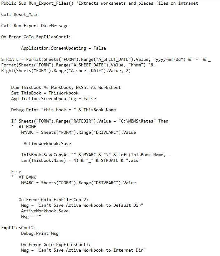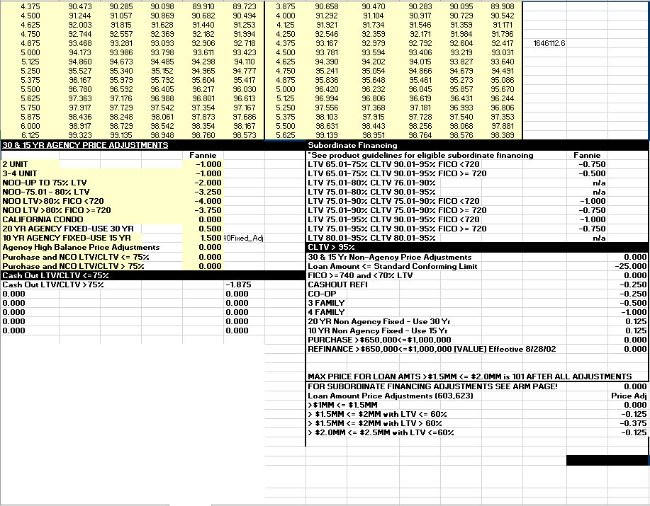 This VBA project was a “killer application” containing 427 pages of code, 62 worksheets (most of them hidden from users), 3 VBA modules and 1.2 million calculations were made when updating all investor rates each morning. This application used many functions and much coding and used VBA Data Arrays to make calculations quickly behind the scenes reducing the amount of time required to complete the pricing task.