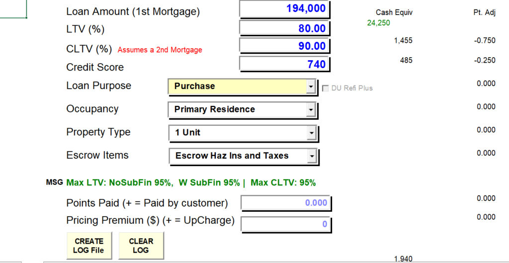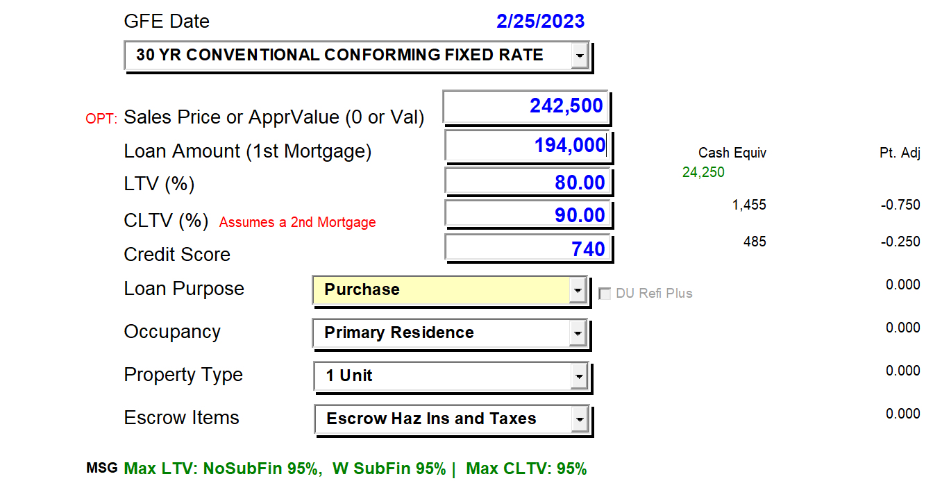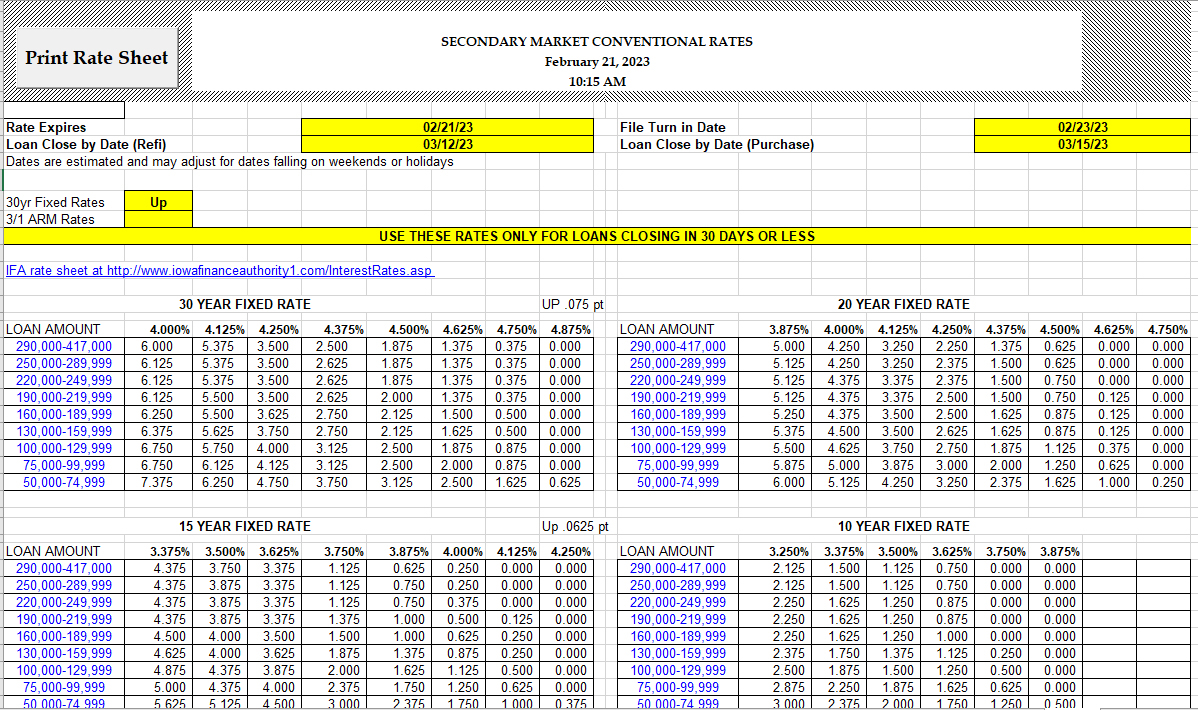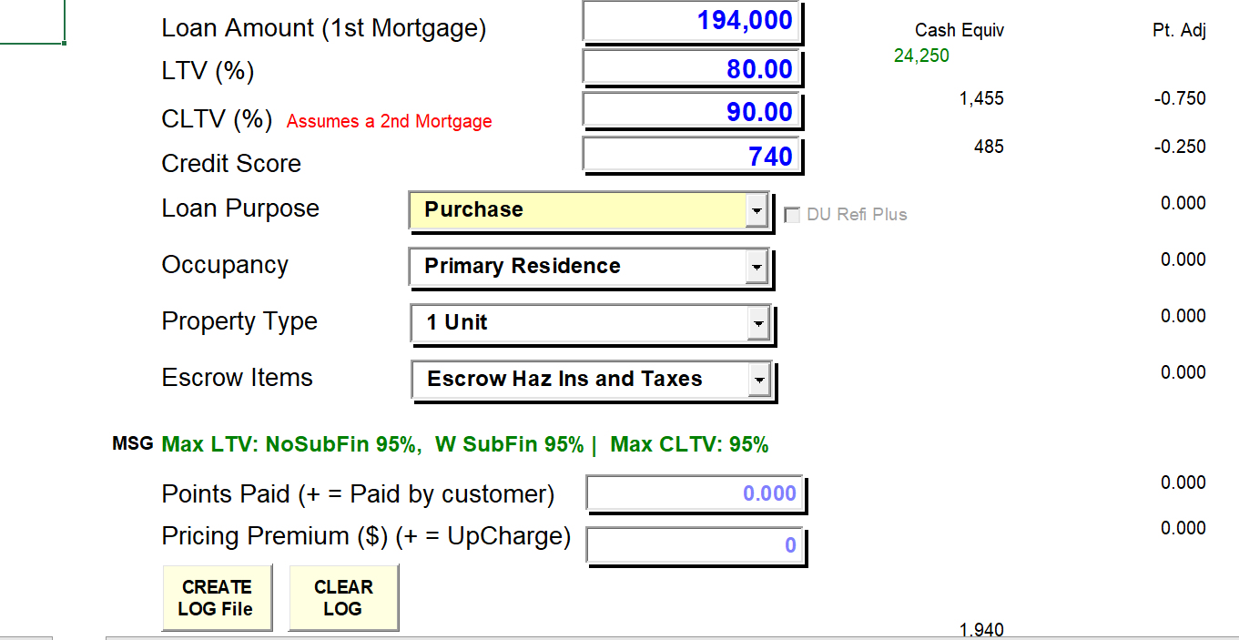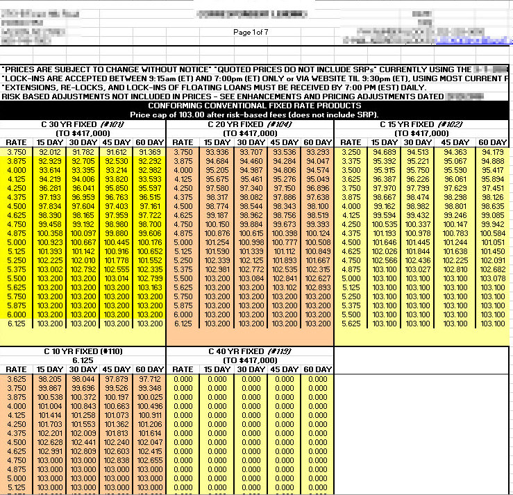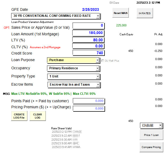 - The Pricing Engine included Conventional Conforming rates, and also In-House rates