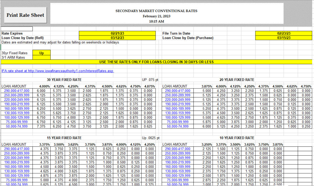- The Open House Worksheet program pulled rates from the Pricing Engine based on loan type, program and amounts.